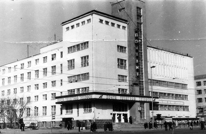 В 1933 году в центре Свердловска, на перекрестке улиц Ленина и Толмачева было выстроено П-образное в плане общественное здание нового типа – Дом Связи. Его запроектировал в стиле конструктивизма московский архитектор К.И. Соломонов.