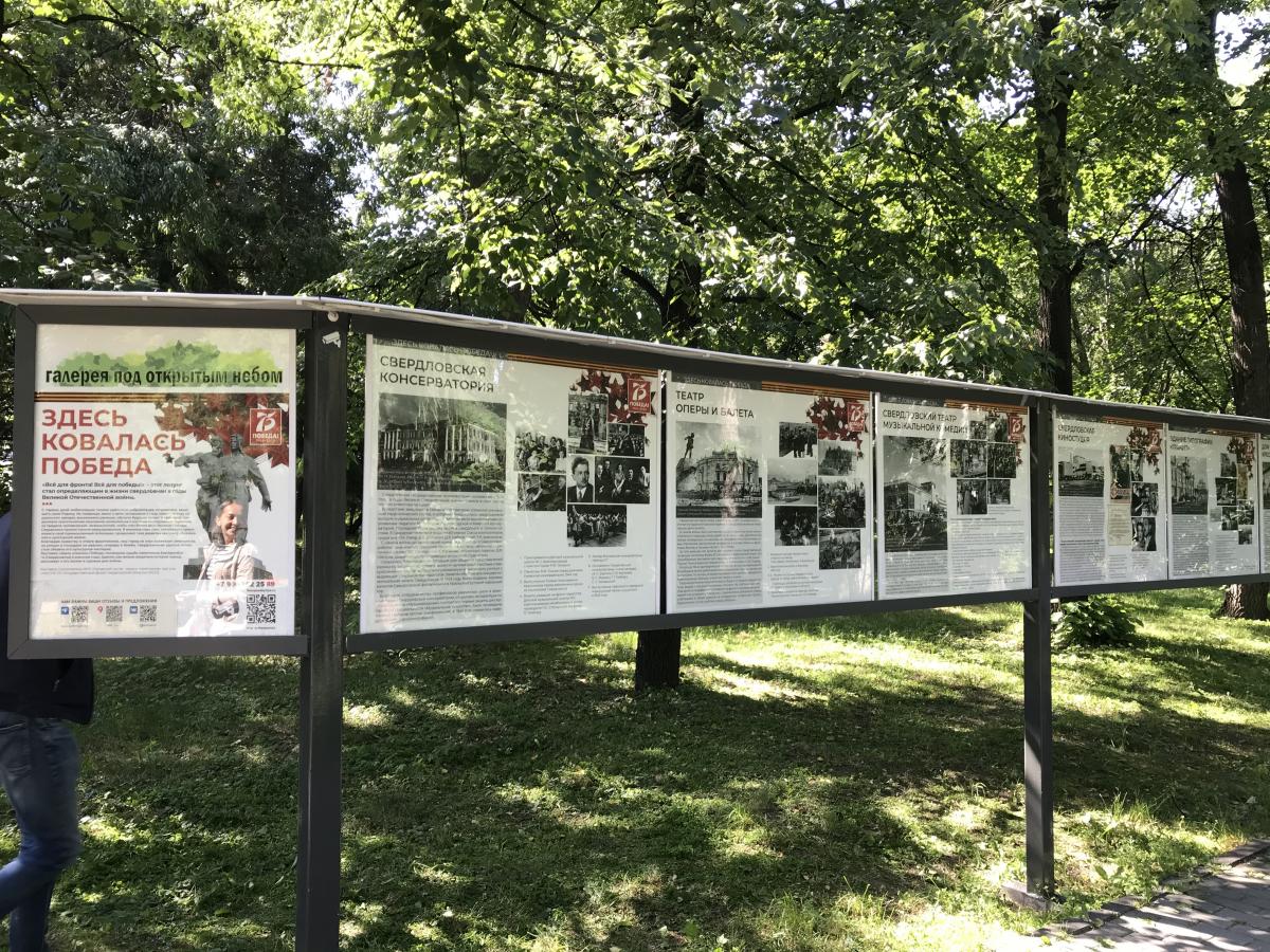 В преддверии праздника Городской центр  охраны памятников при участии Государственного архива Свердловской области (ГАСО) подготовил и разместил выставку «Здесь ковалась Победа» в Галерее под открытым небом (Дендрологический парк на улице 8 Марта). Выставка пробудет там до 03.07.2020.