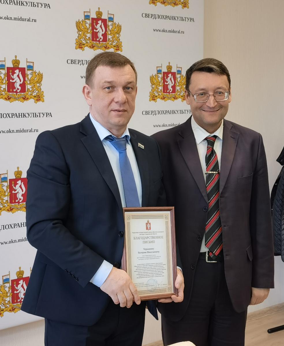В своем вступительном слове Начальник Управления Евгений Рябинин поздравил всех с наступающим Международным днем памятных и исторических мест, и вручил Благодарственные письма отдельным членам Общественного совета – Дерябиной Н.С., Емельянова А.В, Киселёва А.М., Пантыкина А.А., Разбойникова Д.В. и Черкашина В.Н. за многолетнее активное участие в деятельности Общественного совета при Управлении, обеспечивающее обсуждение, реализацию и осуществление общественного контроля институтами гражданского общества вопросов, относящихся к компетенции Управления.
